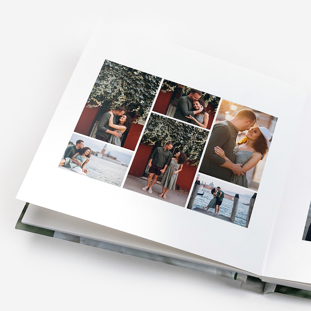 Nos álbuns de fotos em papel fotográfico de 400 g, as folhas são compostas exclusivamente com a sua contracolagem, tornando-as mais finas e flexíveis. Estas assemelham-se mais às páginas de um livro, contando com a elevada qualidade do papel fotográfico.