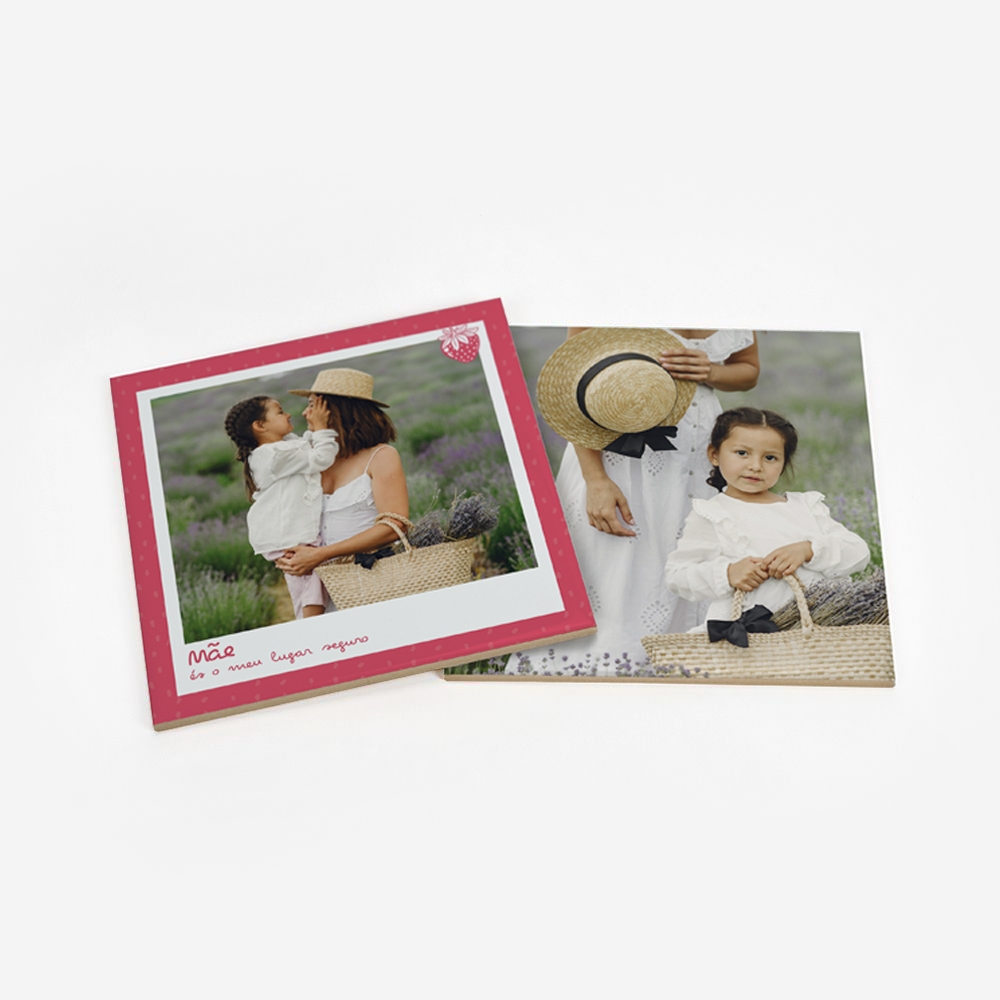 Com dimensões de 15 x 15 cm, tens 100% da área para personalizar. É a tela perfeita para expressares a tua criatividade, seja com fotografias ou textos que te representem.