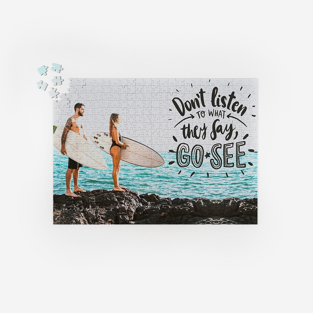A Dreambooks disponibiliza três formatos diferentes para que possas escolher o tamanho que mais se adequa às tuas fotos e o que mais se enquadra na tua capacidade de montar puzzles. Podes escolher um puzzle de 96 peças, no tamanho 21x29cm, 192 peças, no tamanho 29x42cm, ou 500 peças, no tamanho 33x47cm.